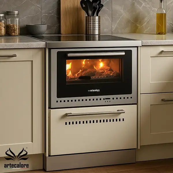 Ce nouveau modèle au design unique présente une porte de foyer située au-dessus du four, lequel, dans sa version la plus grande, offre des dimensions dignes des modèles professionnels.